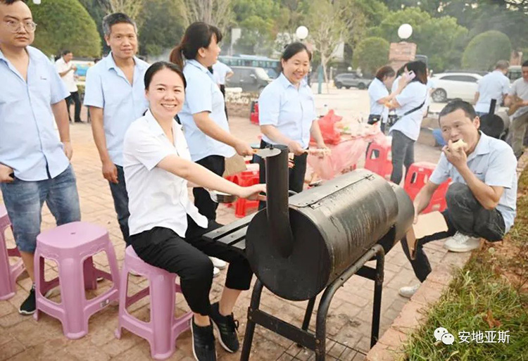 歡聲笑語隨著縷縷炊煙飄蕩在空中,大家烤的烤、扇風的扇風、刷料的刷料、準備食材的準備食材、吃的吃、喝酒的、喝可樂的不忘舉杯對飲,短短2個小時,大家相互協(xié)作,相互探討又相互調(diào)侃,整個場面是如此的和諧、放松而又自在,將所有的不愉快和壓力統(tǒng)統(tǒng)甩到了一邊。